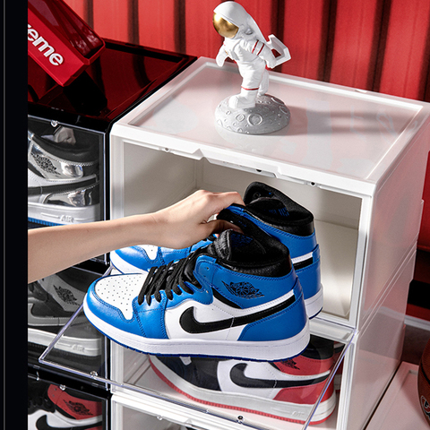 صندوق أحذية مصنوع من الأكريليك لتغليف الأحذية ، صناديق عرض مخصصة للأحذية ، مصنوع من البلاستيك الشفاف للبيع بالجملة